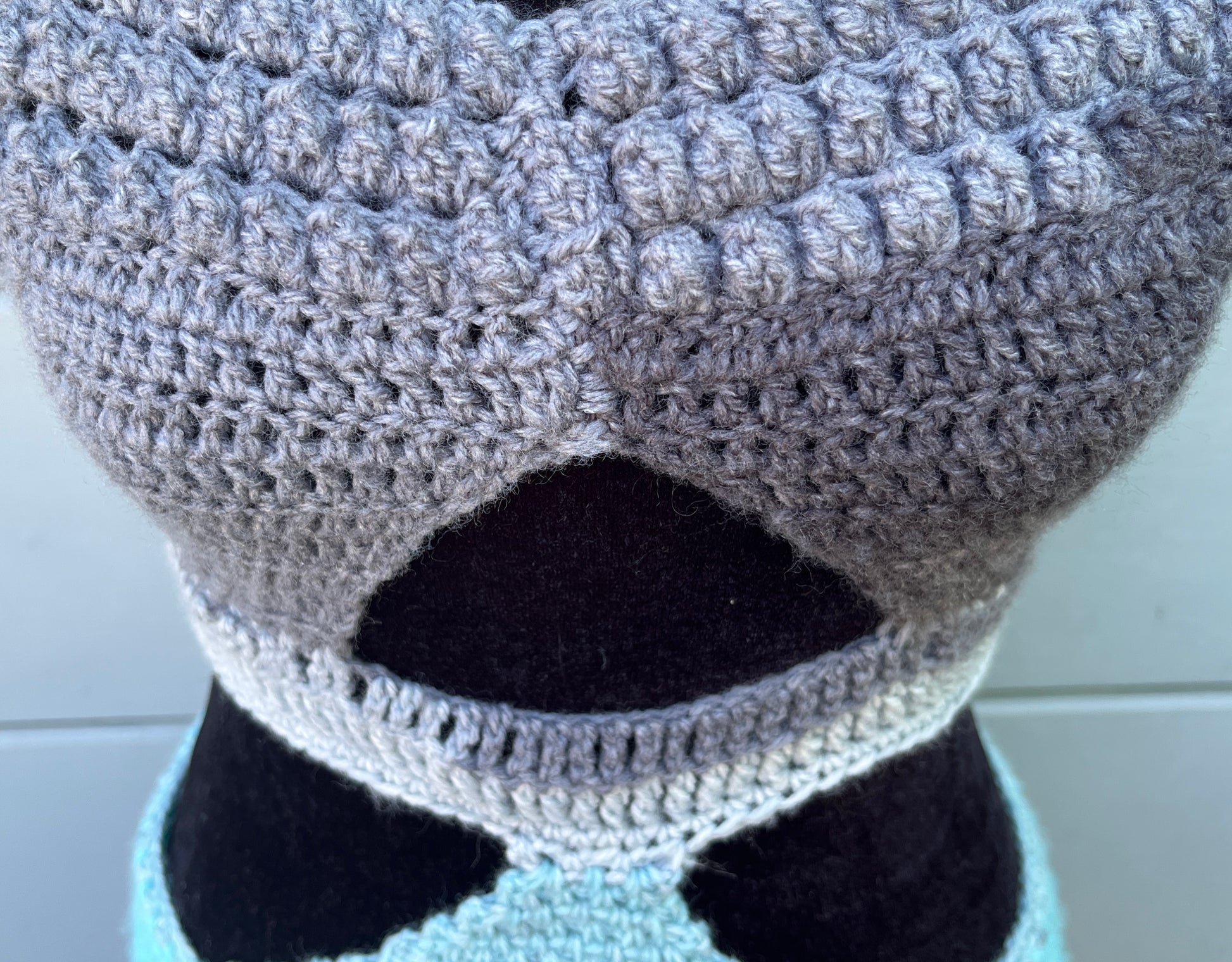 - Created using bubble and moss stitches